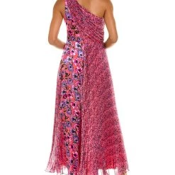 Floral Velvet Guipure Lace Is Cut Into A Flattering One-Shoulder Column Silhouette. One-Shoulder Neckline Three-Quarter Length Sleeve Concealed Back Zip Seamed Waist Pooled Hem Lined.