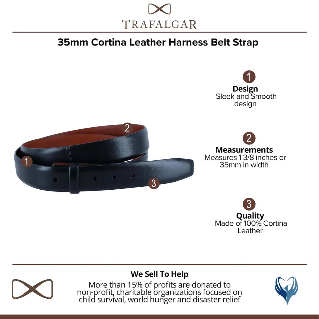 The Trafalgar Cortina Leather XL belt strap is a must-have for any closet. The belt comes with just the belt strap, so you can choose the perfect buckle to match your outfit. This essential strap is a must-have for the well-dressed man making the ultimate personal style statement and is available in Black and Honey Maple.