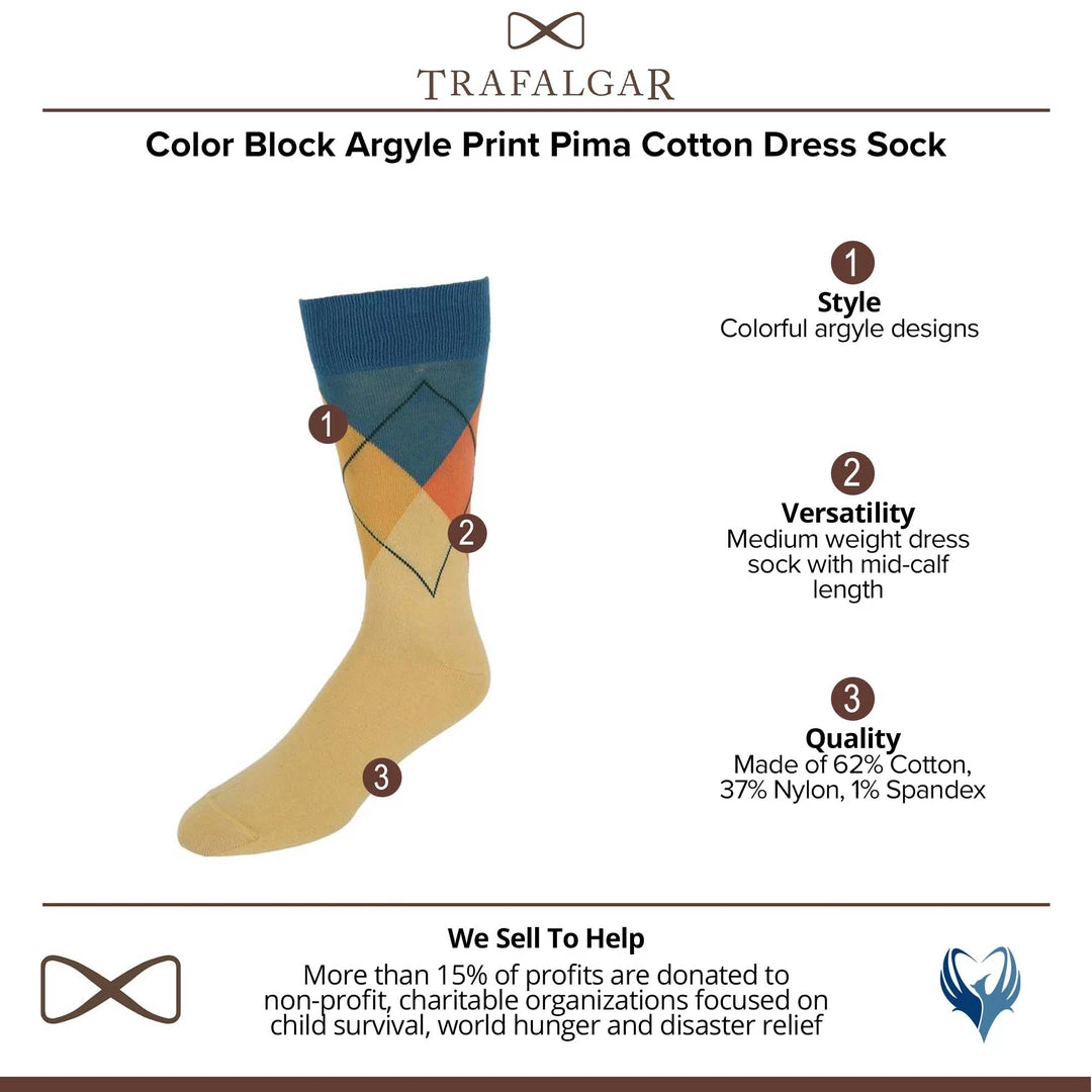 Add a pop of color to your outfit with these Color Block Argyle Print Dress socks. Wear these Pima cotton dress socks at the office or while at home. Made in Peru, these medium-weight dress socks are mid-calf length and are a stylish way to show off your personality with the colorful argyle design. These cotton socks fit shoe sizes 8.5 to 12 and are machine washable.
