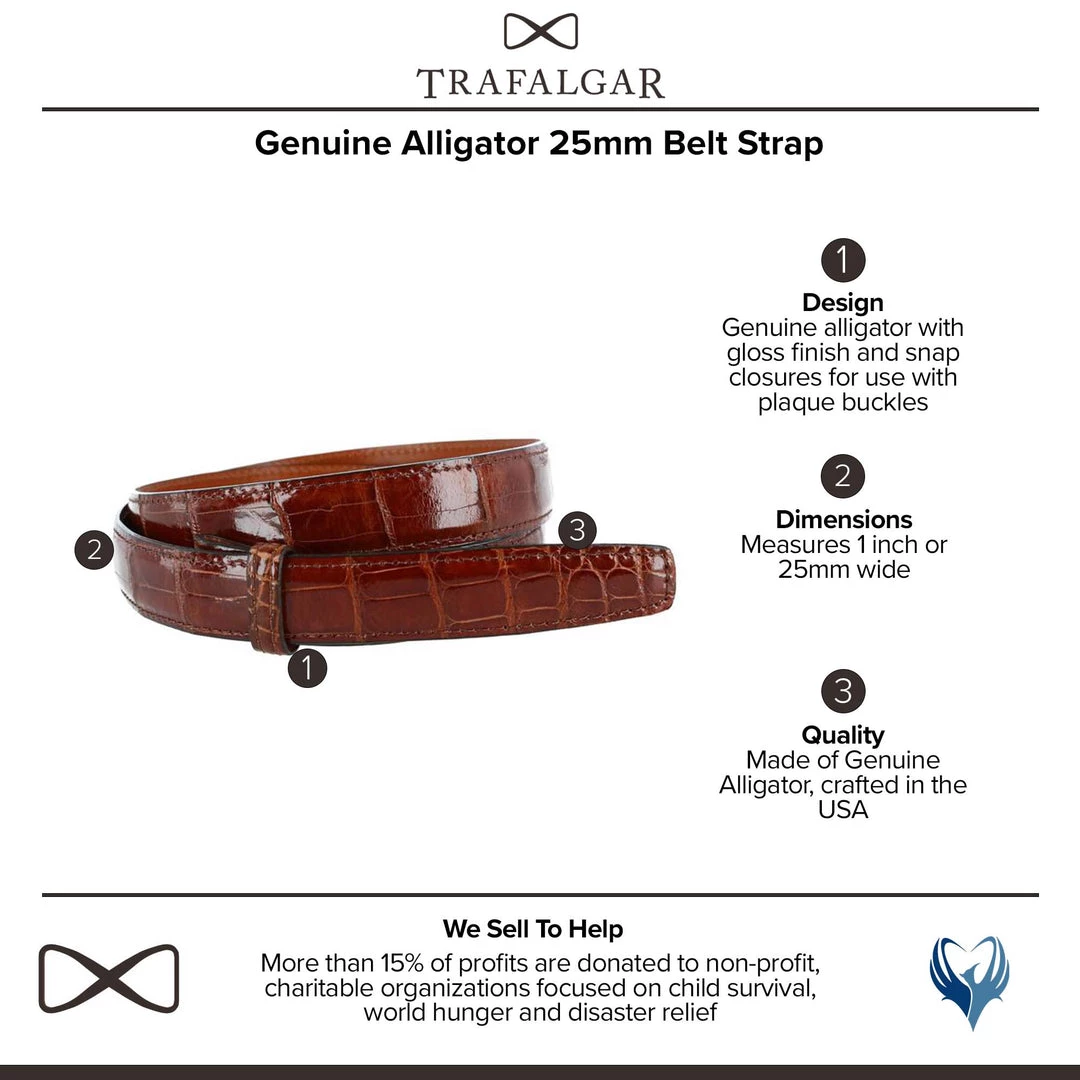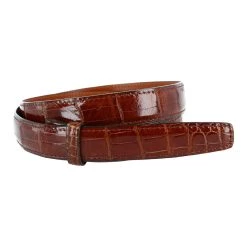 This genuine alligator compression belt strap will complete any outfit for that special occasion. Made in the USA, the 1-inch belt strap has a luxurious glazed finish for an elegant look. The sturdy snap will hold onto your buckle and you are able to personalize the alligator belt strap with a buckle of your choice. Note that it is not meant for harness buckles, only for plaque buckles. Please remember that when ordering your belt strap order one size larger than your waist size. If you wear 38-inch pants, purchase a 40-inch belt.