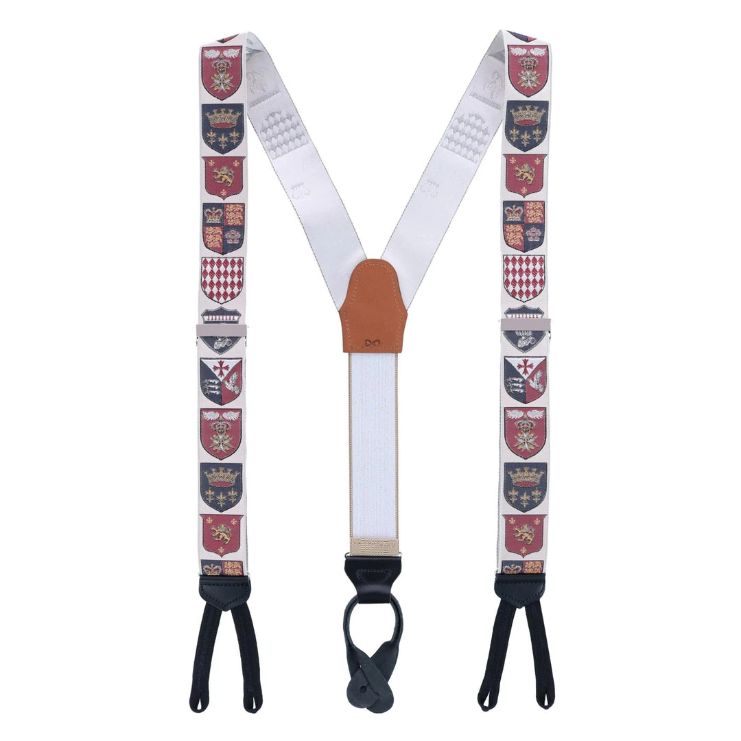 We recently opened the Trafalgar Vault and discovered vintage silk loomed ribbons that were handmade in France and used to create previous designs of our limited edition braces. In our effort to be more sustainable, we decided to create a new brace from the vintage ribbons. Please welcome the Retro Pattern Limited Run Braces! Experience the same beautiful loomed silk ribbons with the same high-quality construction, crafted with a new backing. This way, our limited edition braces remain exclusive, but those who missed previous designs will be able to grab a pair of Retros and enjoy! These braces feature rings and adjusters imported from England to aid you in obtaining the perfect fit. The elastic back strap is a phenomenal way to stay comfortable throughout the entire day. The elastic moves with you, so you almost forget you are wearing the braces. Check back regularly as new Retro styles will be introduced over the year, giving you a chance to pick up designs you may have missed in their initial runs. Made in America.