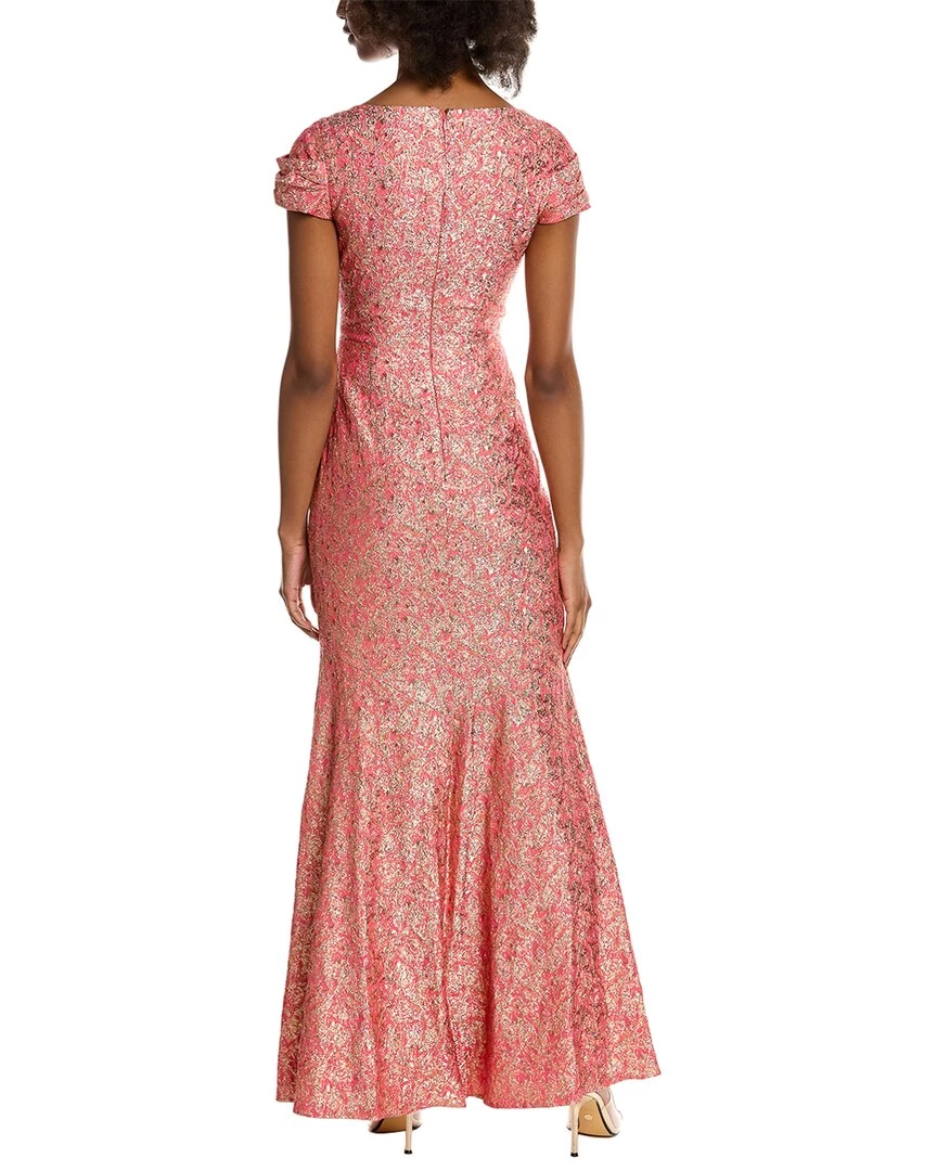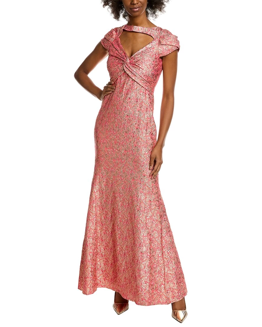 - Amorina Gown In Metallic With Cut Out At Chest, Cap Sleeves, And Twist Top