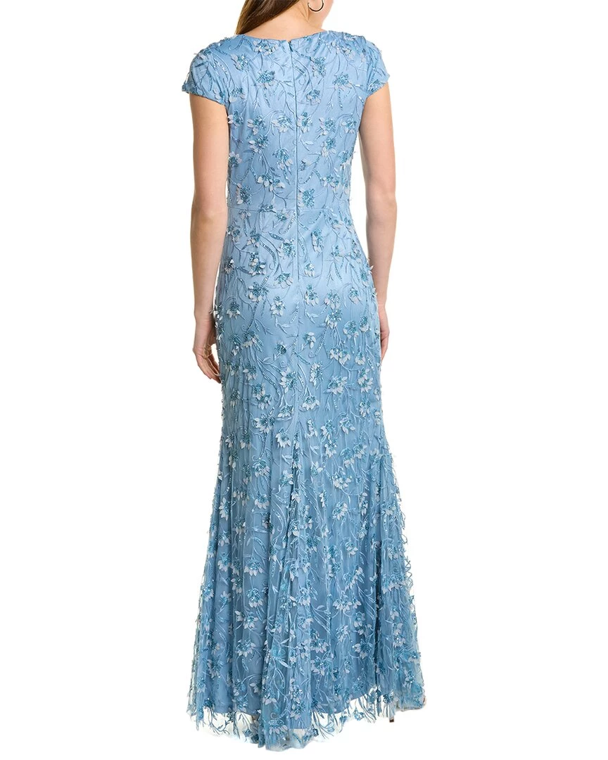 - Bree Gown In Blue With Embroidered And Embellished Mesh Design, Sweetheart Neckline, And Cap Sleeves